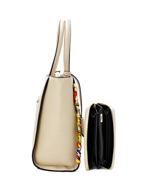 Fashion Leather Tote Bag With Rainbow Scarf (3 Colors Available)